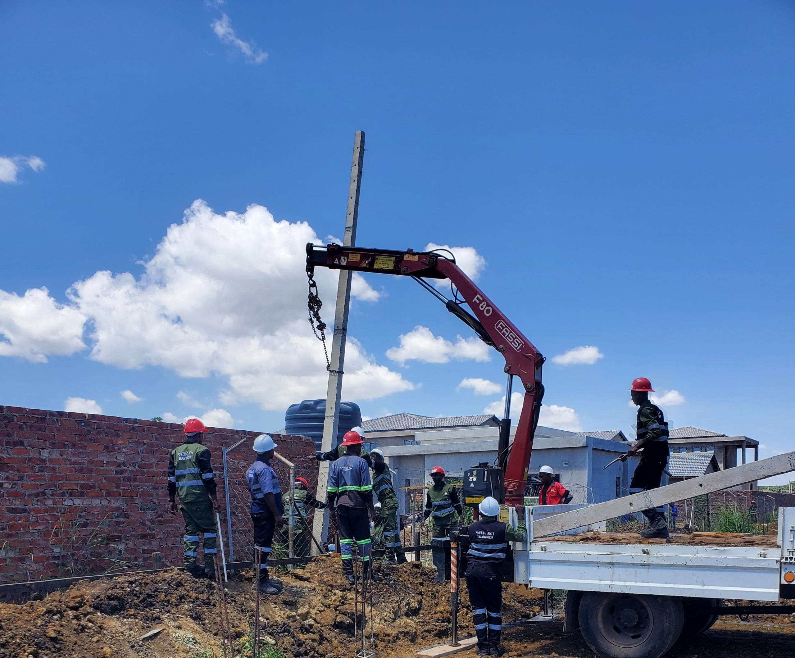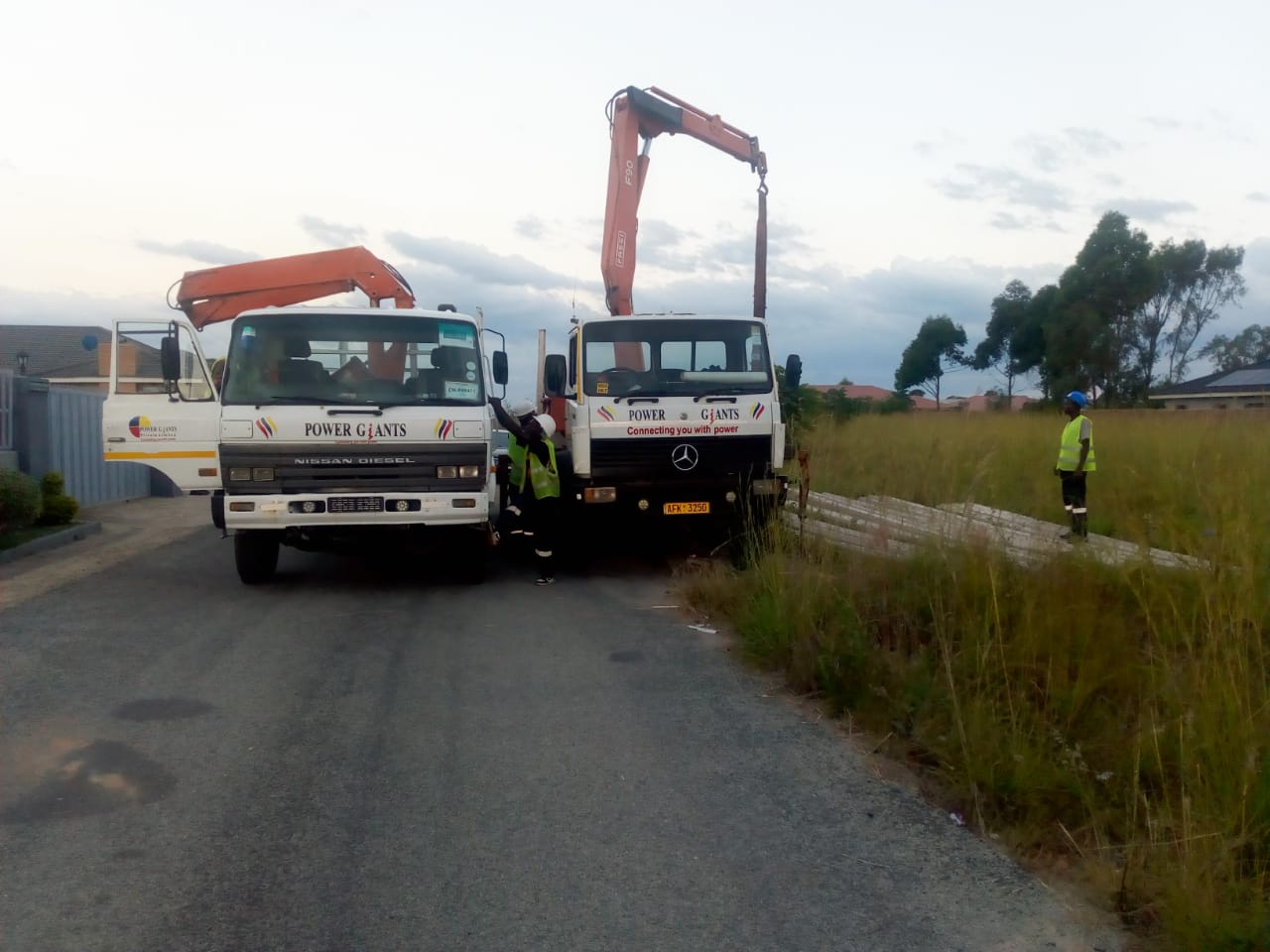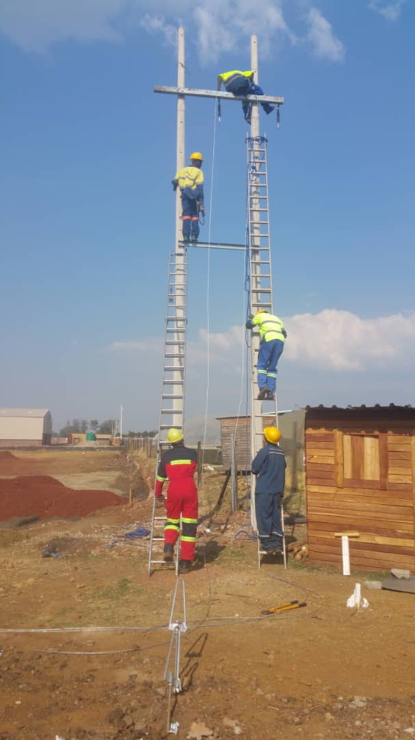 Power Giants TRANSMISSION team constructing a 10km 11kv High Voltage powerline.